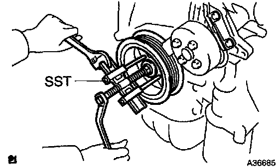 2. Using the crankshaft pulley bolt, turn the crankshaft and set the set key on the crankshaft upward.