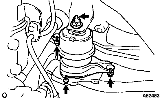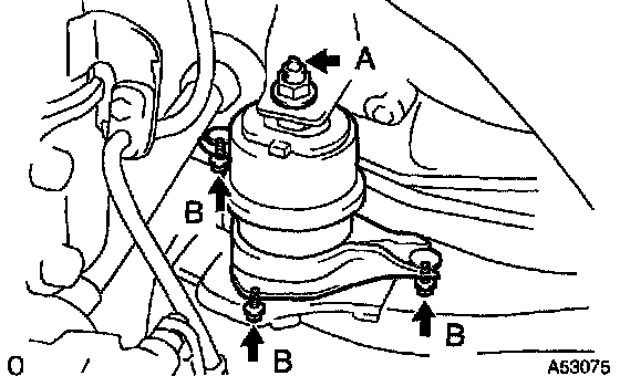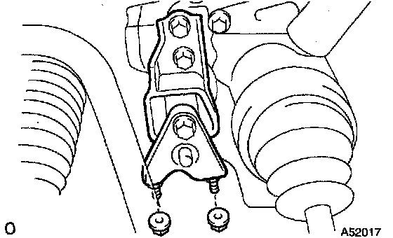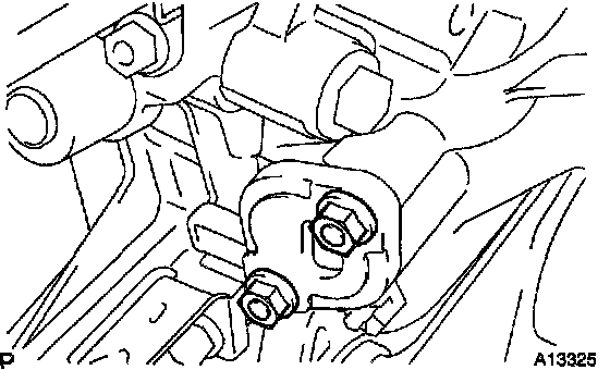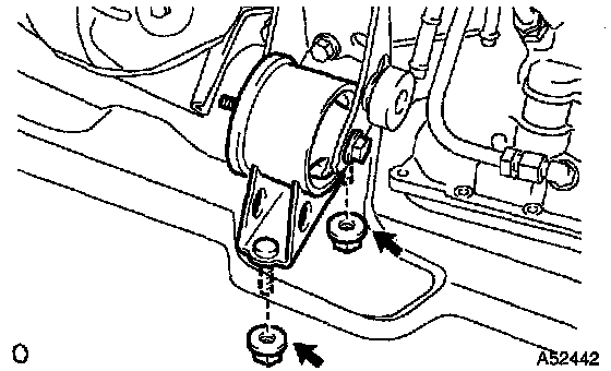 b. Remove the 2 nuts, and disconnect the engine mounting insulator.