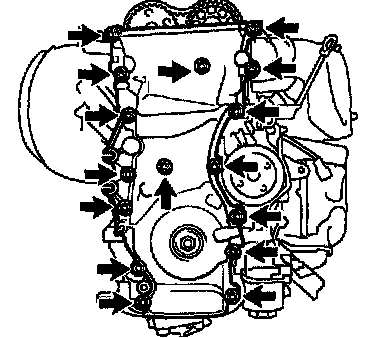 d. Install the timing chain cover with the 14 bolts and 2 nuts.