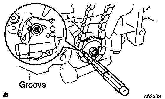 g. Align an adjusting hole of the oil pump drive shaft gear with the groove of the oil pump.