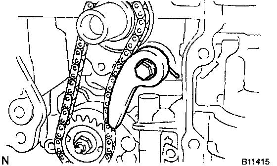 d. Remove the chain tensioner, oil pump drive shaft gear and No. 2 chain.