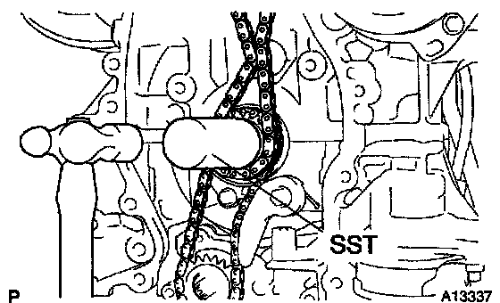b. Insert the blade of SST between the crankcase and oil pan, cut off applied sealer and remove the oil pan.