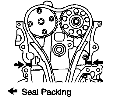 a. Remove any old packing (FIPG) material and be careful not to drop any oil on the contact surfaces of the timing chain cover, cylinder head and cylinder block.