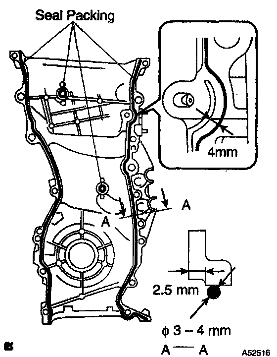 c. Apply seal packing in the shape of bead (Diameter 3 - 4 mm (0.118 - 0.157 inch)) as shown in the illustration.