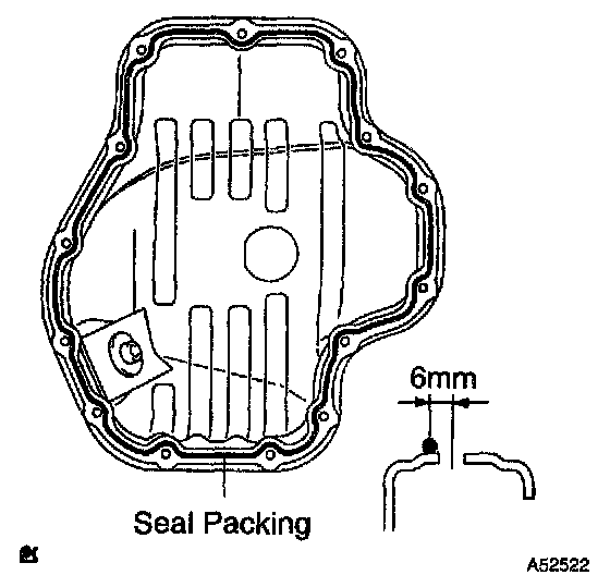 b. Apply seal packing in the shape of bead (Diameter 3 - 4 mm (0.157 inch)) as shown in the illustration, and install the oil pan.