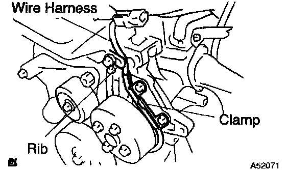 b. Confirm the wire harness of the crank position sensor is placed as shown in the illustration.