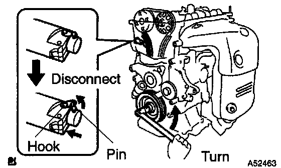 c. Turn the crankshaft counterclockwise, and disconnect the plunger knock pin from the hook.