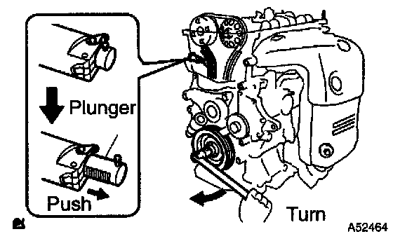 NOTICE: Be sure not to revolve the crankshaft without the chain tensioner.
