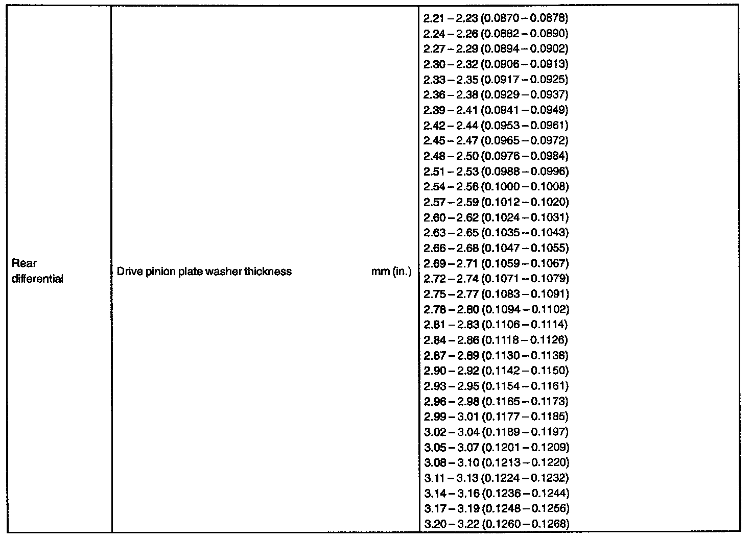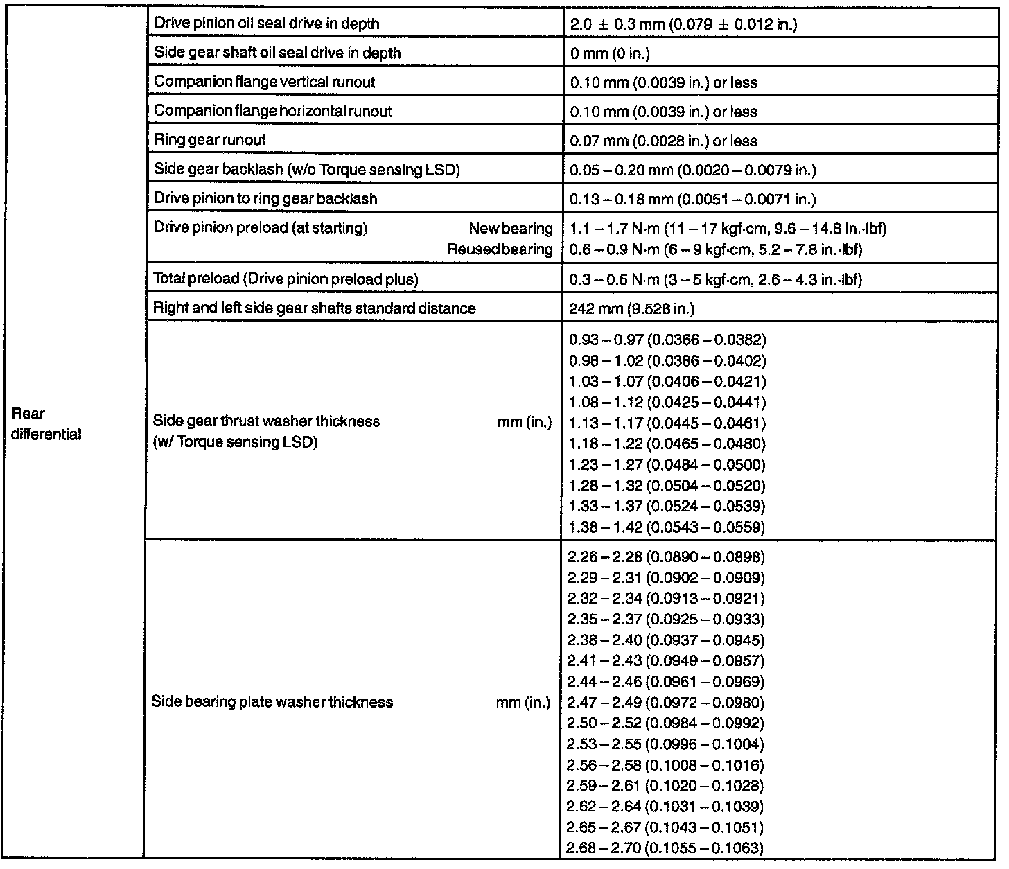 TORQUE SPECIFICATION: