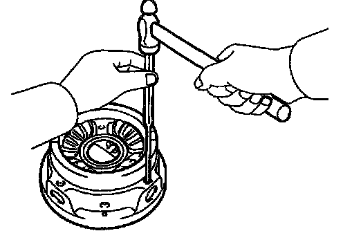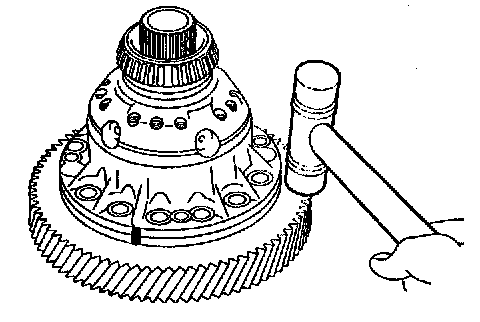 c. Using a plastic hammer, tap on the ring gear to remove it from the case.