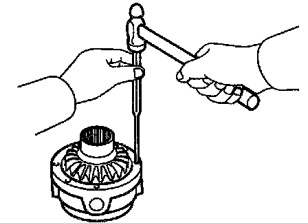 f. Using SST and a torque wrench, measure the turning torque of the differential case assy.