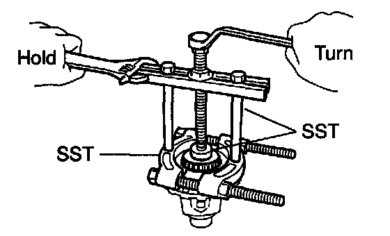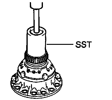 a. Using SST, remove the front differential case front tapered roller bearing from the differential case.