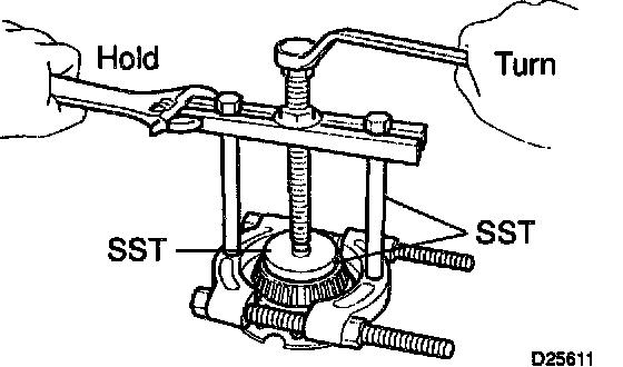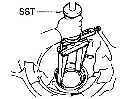 e. Using SST, turn the differential assy right and left 2 or 3 times to allow the bearing settle.