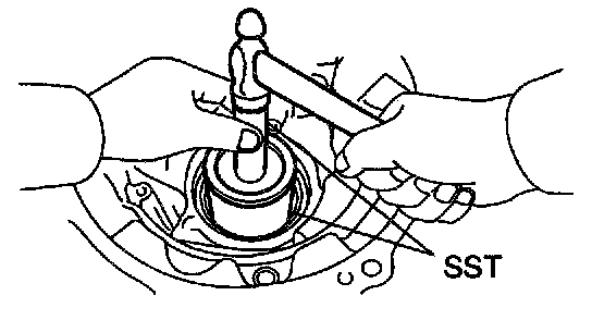 a. Using SST and a hammer, install a new oil seal.
