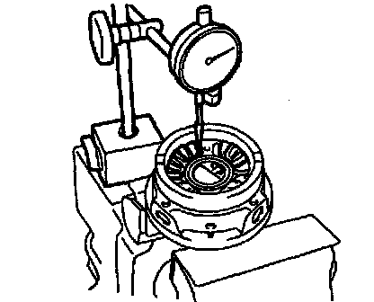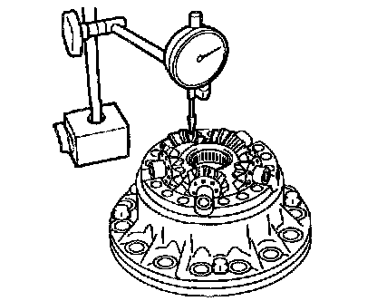 c. Pressing and holding the differential spider toward the differential case RH, measure the pinion's backlash with a dial indicator as illustrated.