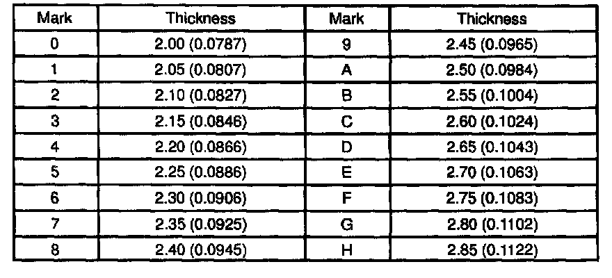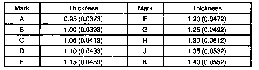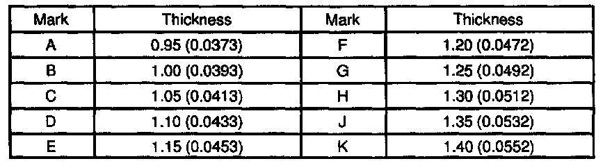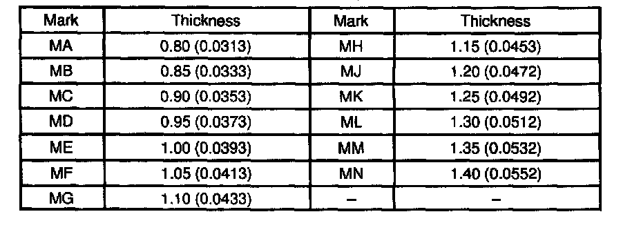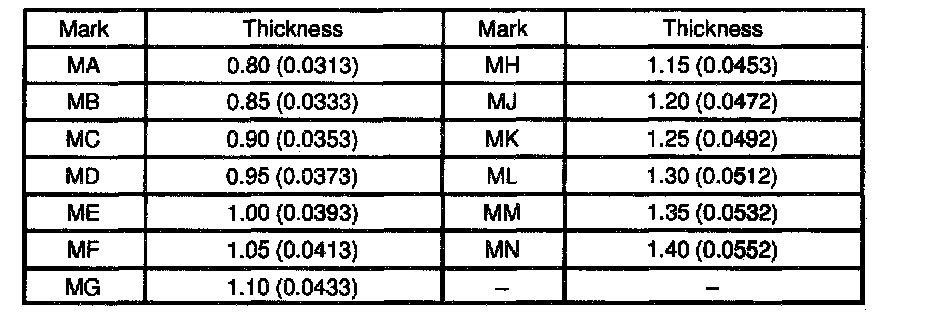 Thrust washer thickness: mm (in.)