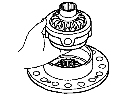 f. Remove the differential spider, 5 center differential pinions and 5 center differential pinion thrust washers from the differential case RH. Put them in the differential intermediate case and fix the case.