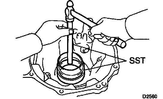 a. Using SST, remove the front differential case rear tapered roller bearing from the differential case.