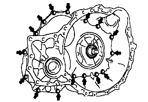 g. Remove the 16 bolts and the transaxle housing.