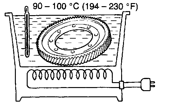 a. Using ATF and heater, heat the front differential ring gear to 90 - 110° C. (194.0 - 230.0° F)