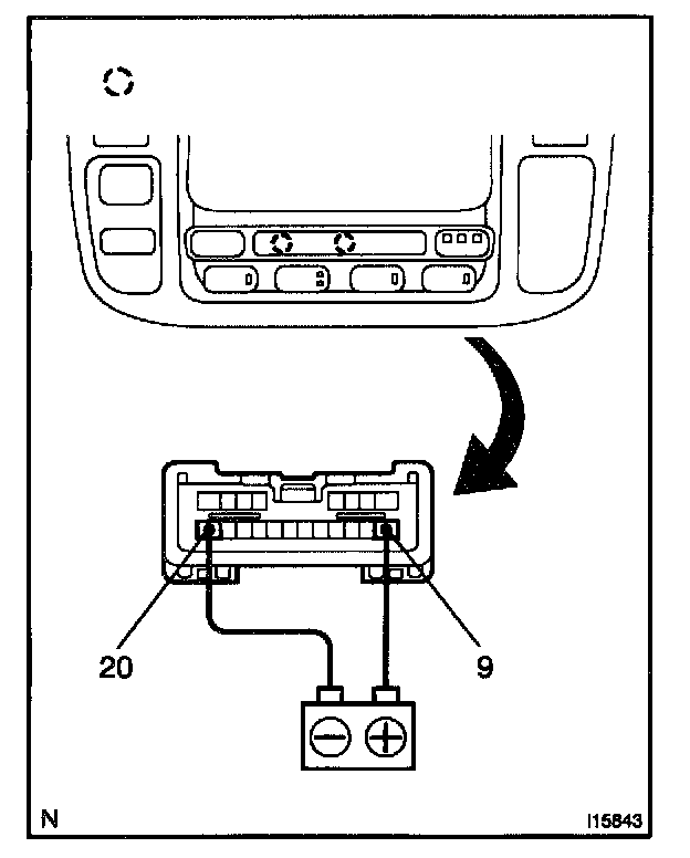 a. Connect the positive (+) lead from the battery to terminal 9 and negative (-) lead to terminal 20 then check that the illuminations lights up.