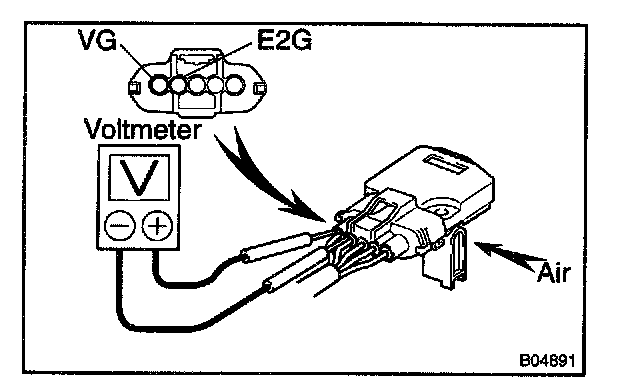 4. Using a voltmeter, connect the positive (+) tester probe to terminal VG, and negative (-) tester probe to terminal E2G.