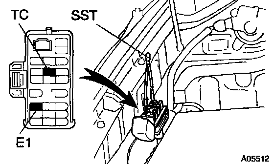 a Using SST, connect terminals TC and E1 of the DLC1.