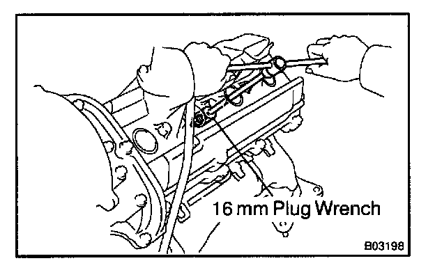 c. Using a 16 mm plug wrench, remove the spark plugs.