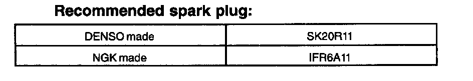 - Spark plug should be replaced every 100,000 km (60,000 miles).