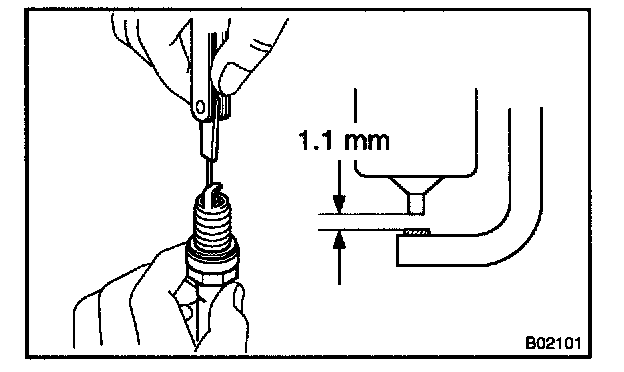 Correct electrode gap for new spark plug: 1.1 mm (0.043 in.)