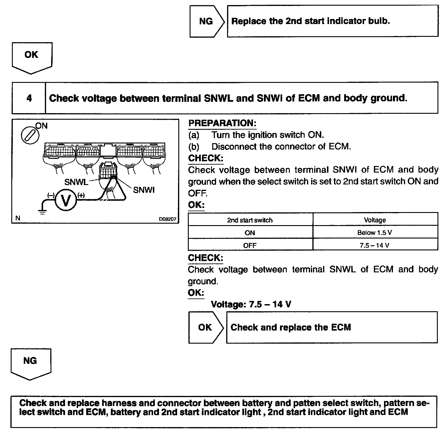 When 2nd start mode is selected with the pattern select switch, the ECM controls the solenoid valves and the transmission starts from 2nd gear.