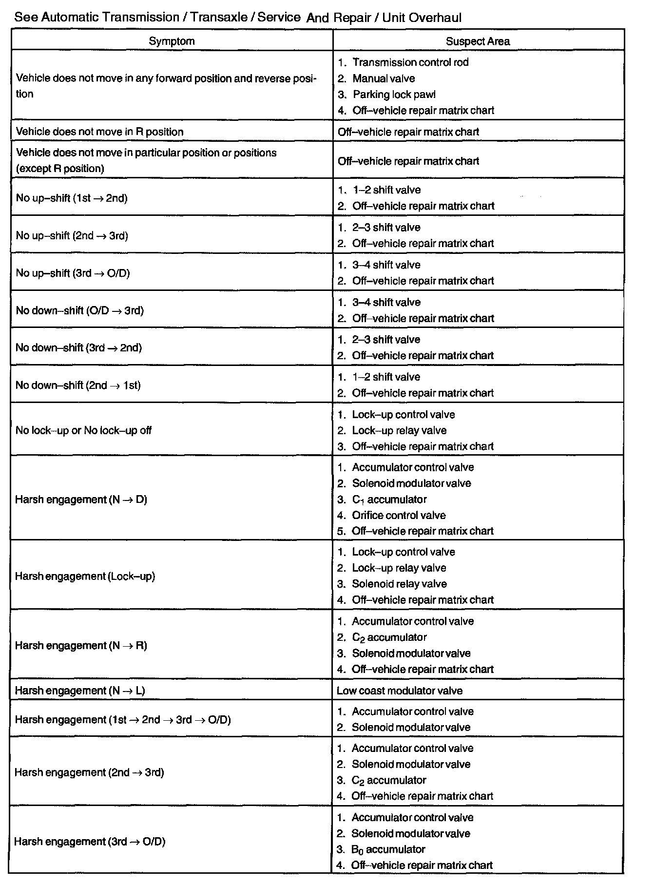 Chart 2: On-vehicle Repair Matrix Chart