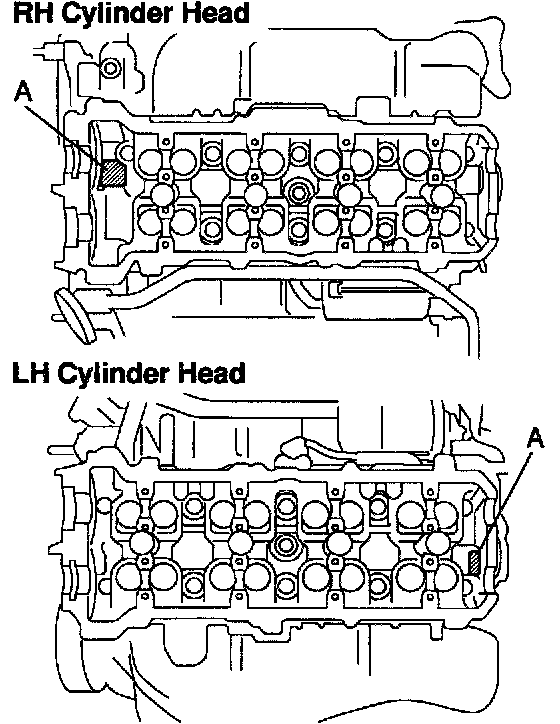 NOTICE: Do not drop the plate washer for cylinder head bolt into portion A of the cylinder head. If dropped into portion A, the plate washer will pass through the cylinder head and cylinder block into the oil pan.
