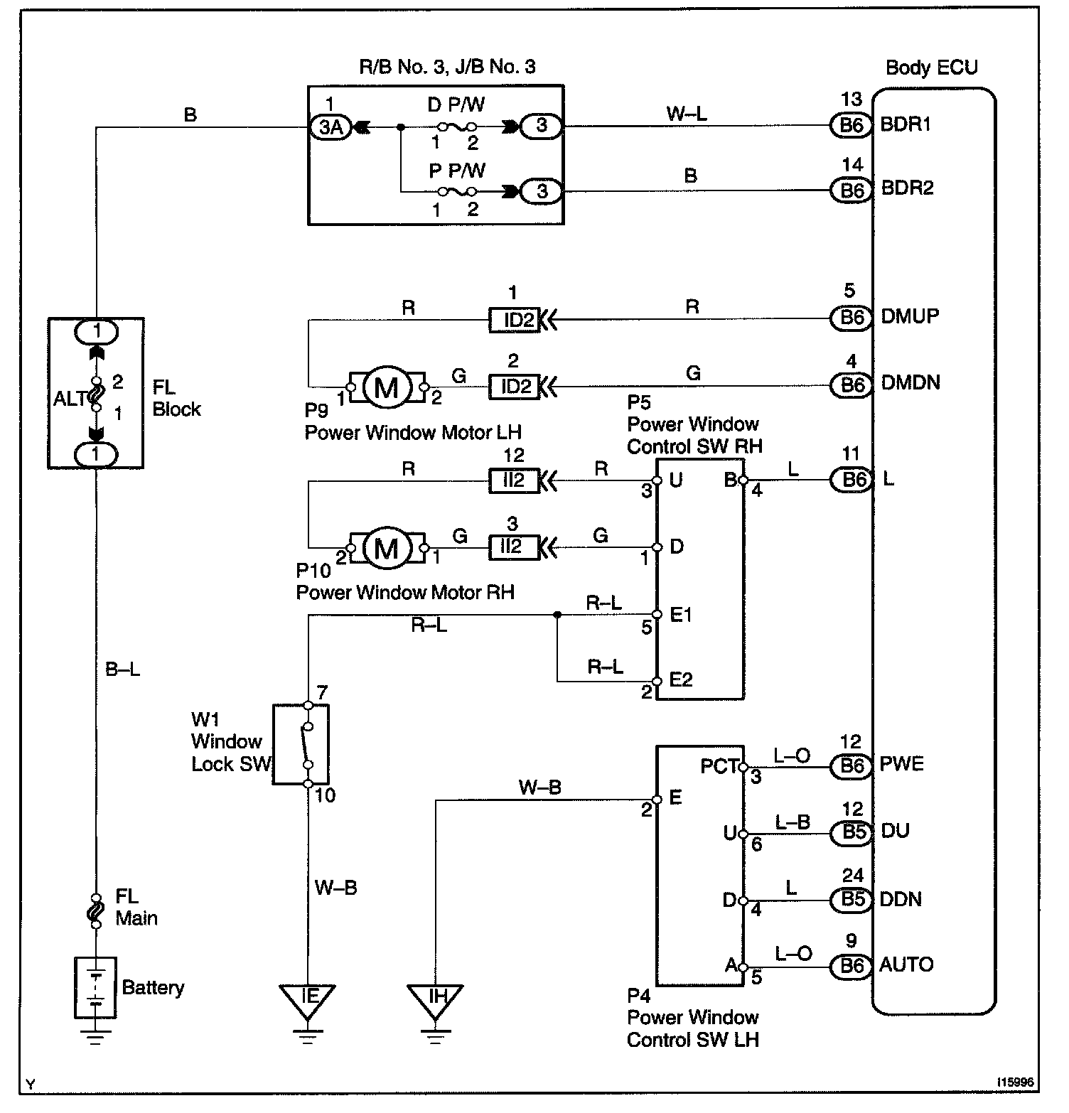 This circuit detects the state of the power window control switch.