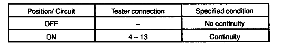 If continuity is not as specified, replace the switch.