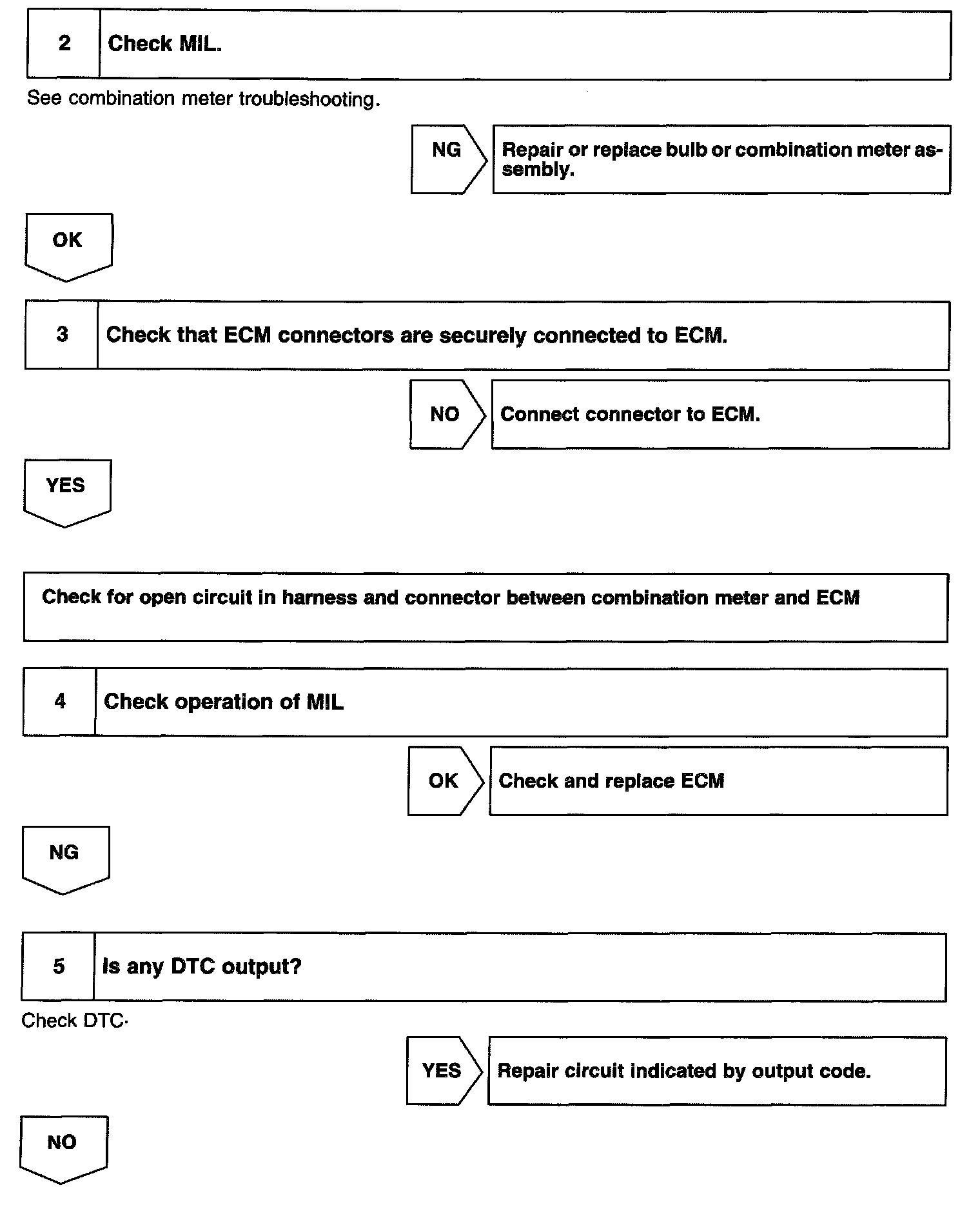 CIRCUIT DESCRIPTIONIf the ECM detects trouble, the MIL lights up. At this time, the ECM records a DTC in memory.
