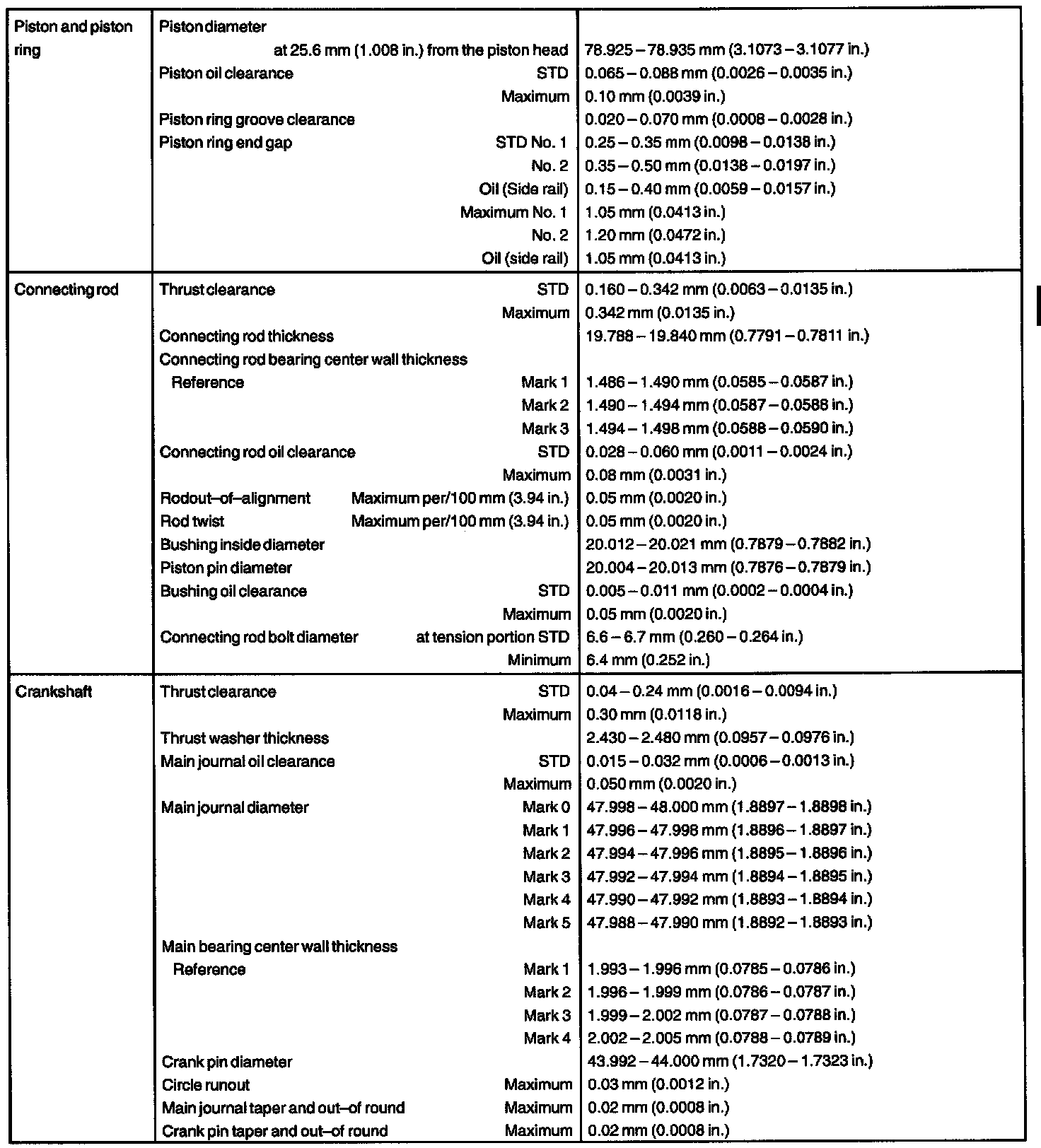 ENGINE MECHANICAL SERVICE DATA: