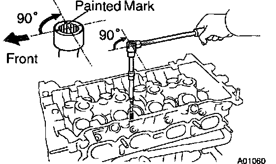 d. Retighten the cylinder head bolts 90° in the numerical order shown.