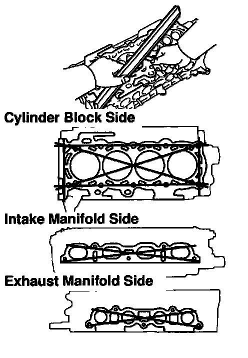 a. Inspect for flatness. Using a precision straight edge and a feeler gauge, measure the surface contacting the cylinder block and the manifolds for warpage.