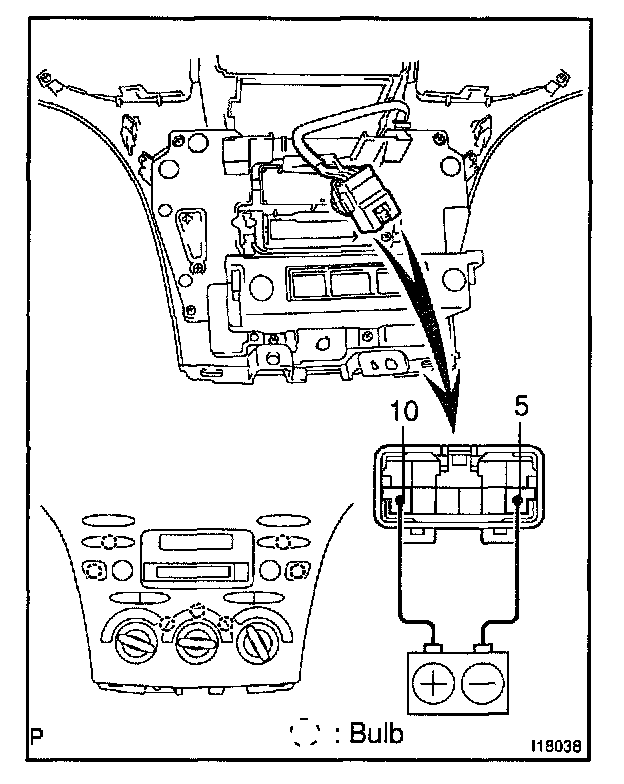 a. Connect the positive (+) lead from the battery to terminal 5 and negative (-) lead to terminal 10, then check that the illumination lights up.
