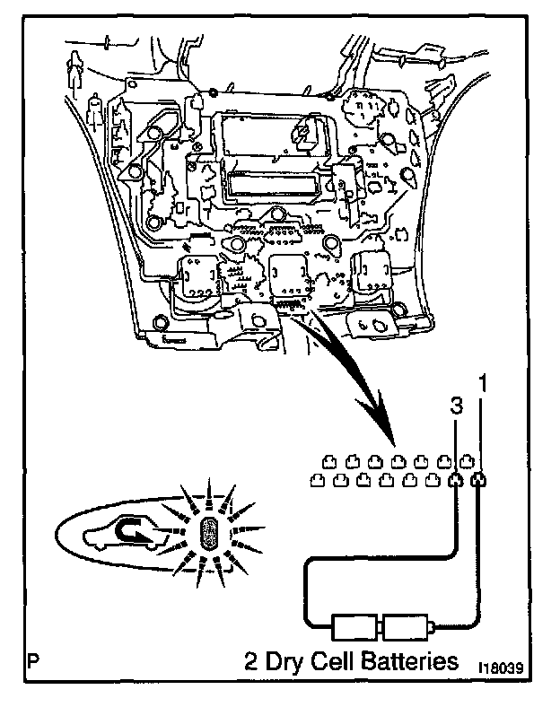 Connect the positive (+) lead from the two 1.5 V dry cell batteries to terminal 1 and negative (-) lead to terminal 15, then check that the MAX. A/C indicator lights up.