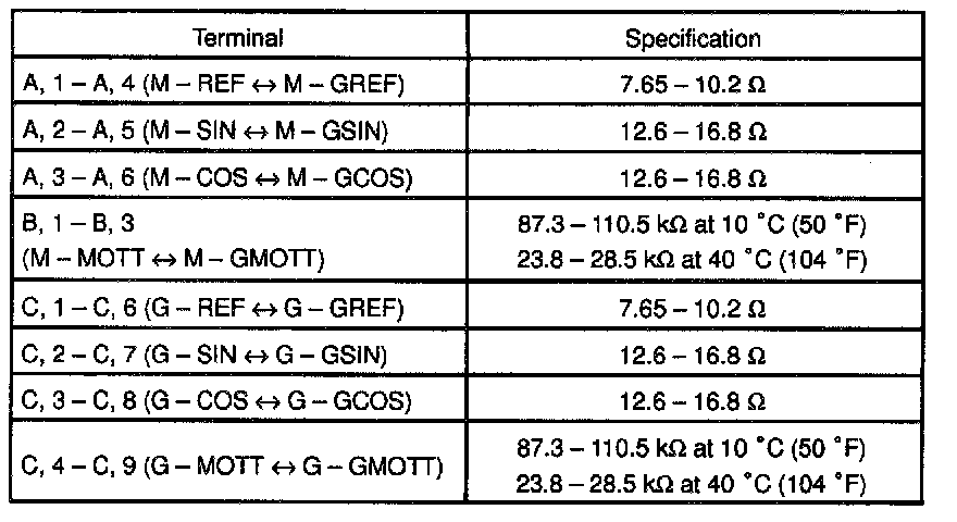 INSPECTIONINSPECT SPEED SENSOR (RESOLVER) AND TEMPERATURE SENSOR