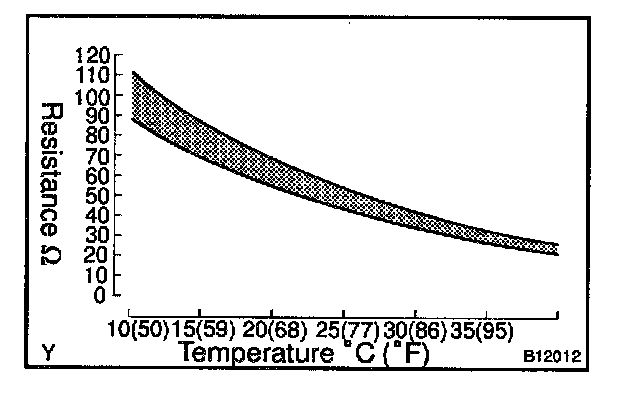 HINT: The range of standard values for the temperature sensor is shown in the illustration.