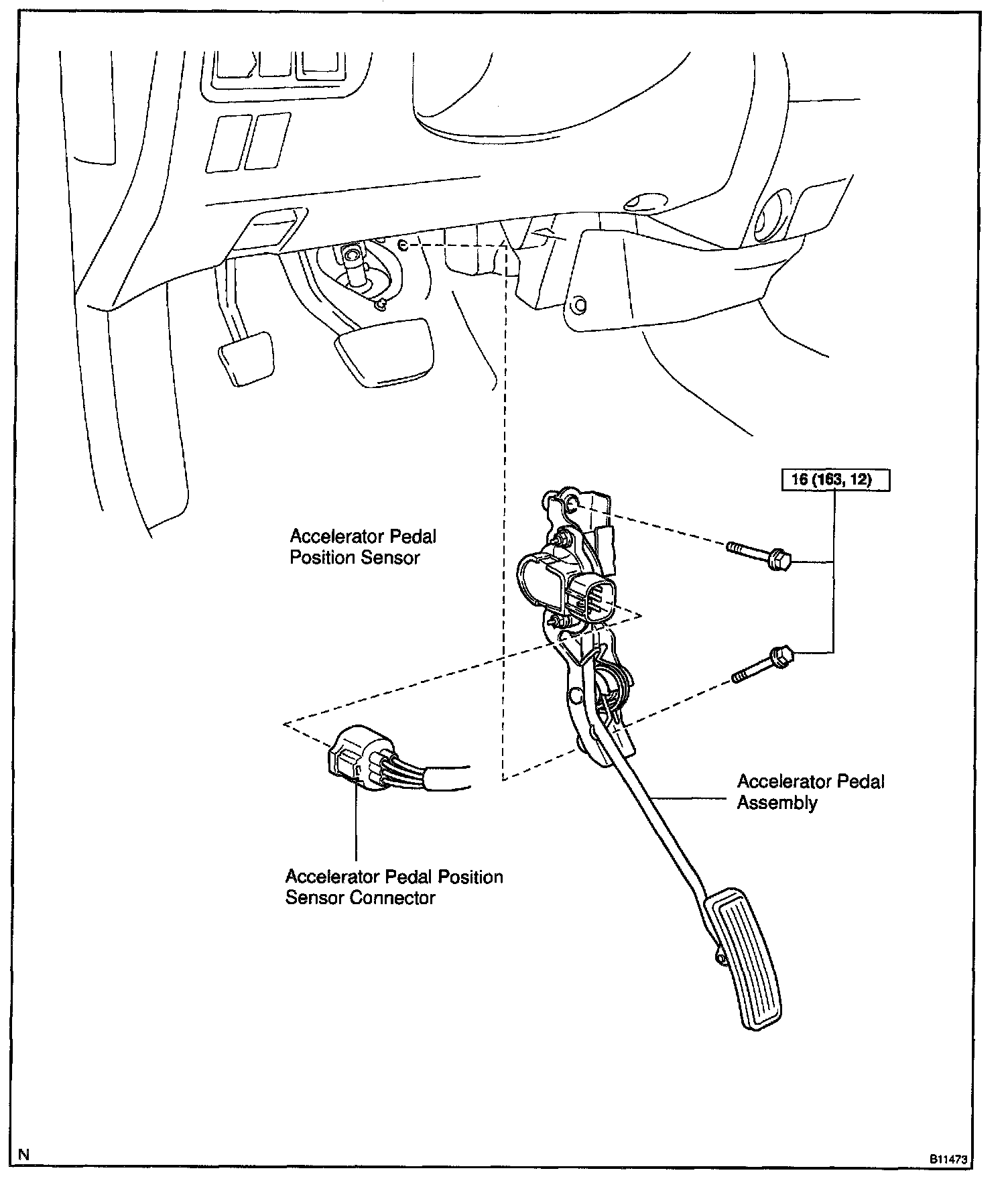 NOTE: To prevent deterioration, do not shock the accelerator pedal position sensor.