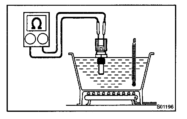 Using a ohmmeter and thermometer, check continuity between terminals.