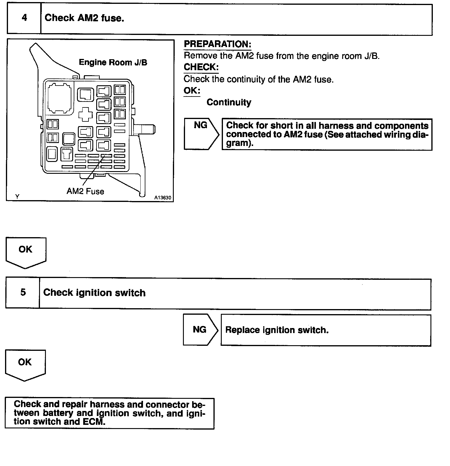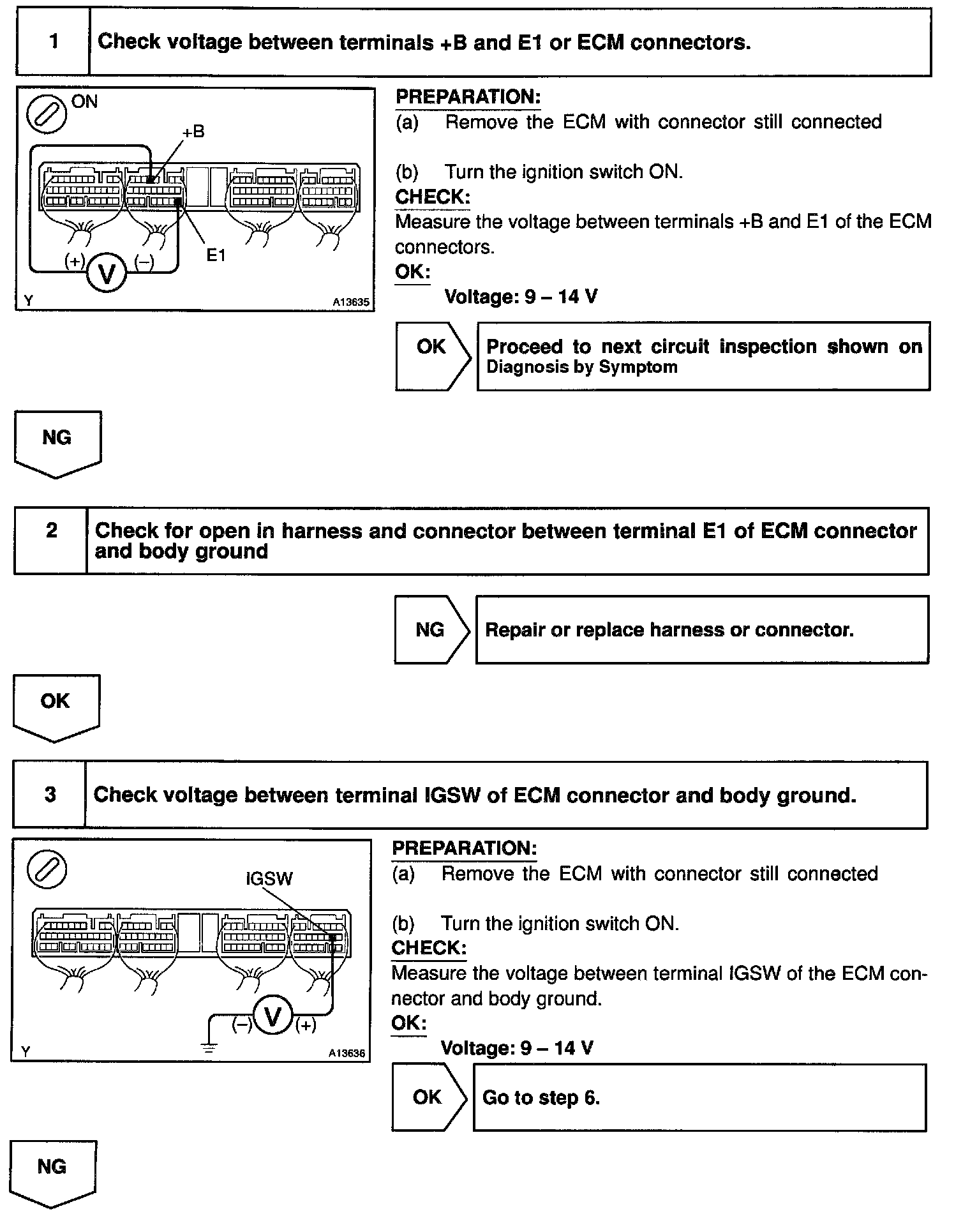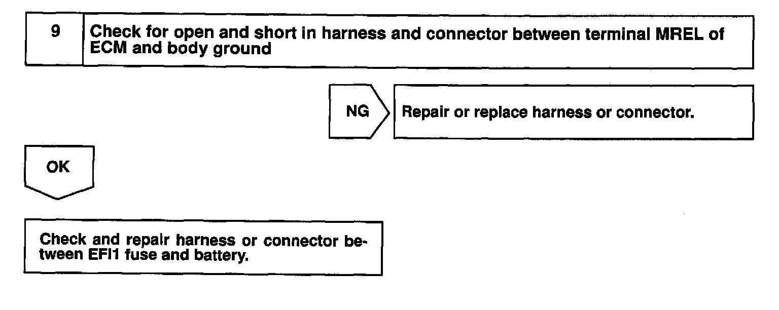 This signal causes current to flow to the coil, closing the contacts of the EFI main relay and supplying power to terminals +B of the ECM.