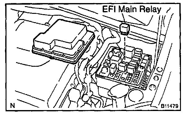 1. REMOVE EFI MAIN RELAY FROM ENGINE ROOM J/B NO.2 (Marking:EFI)