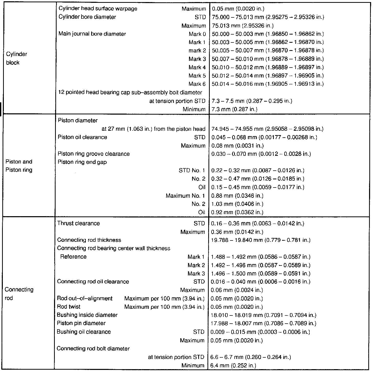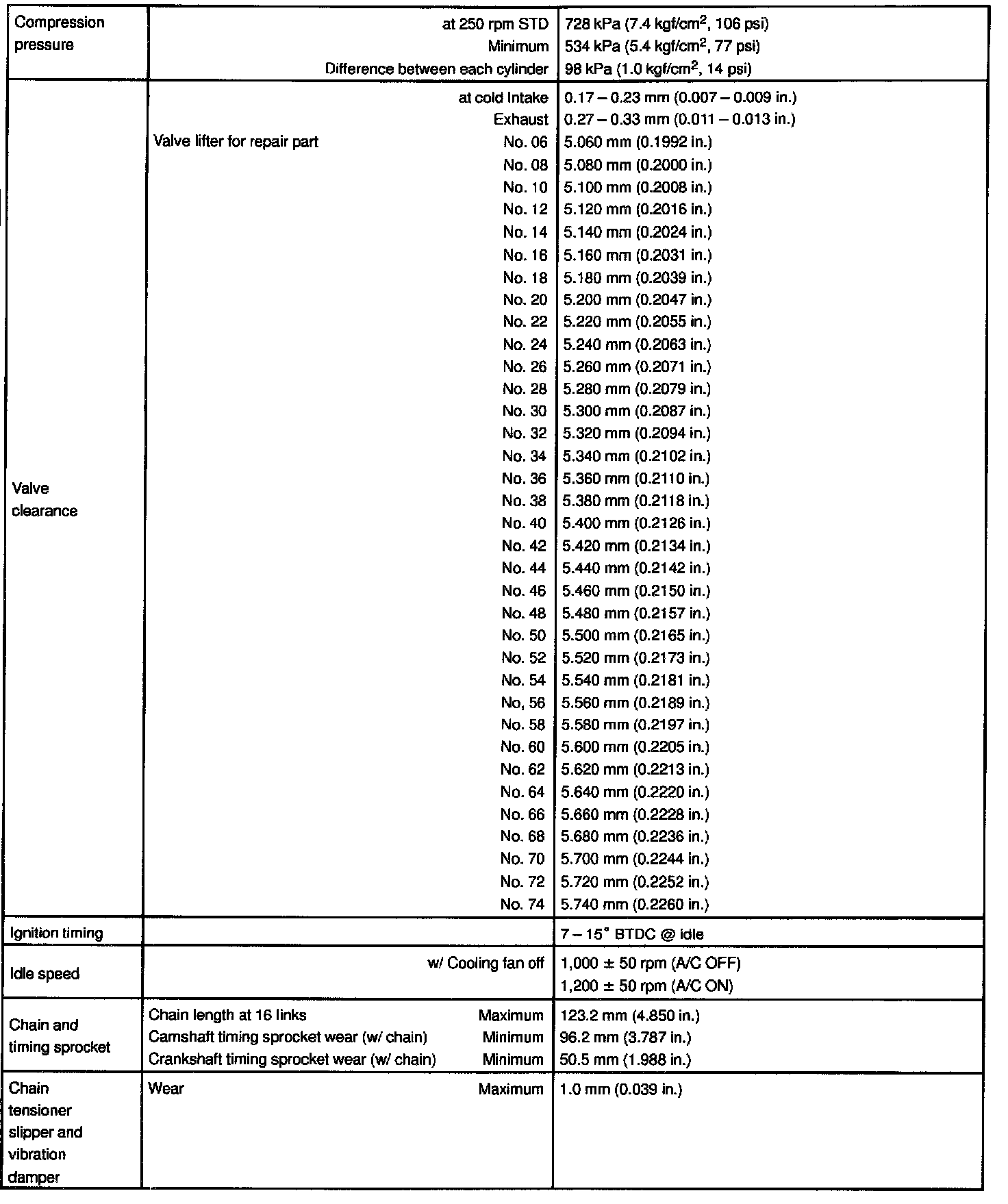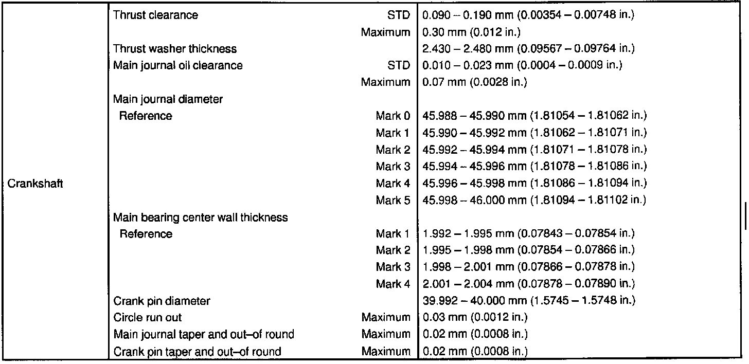 ENGINE MECHANICAL SERVICE DATA: