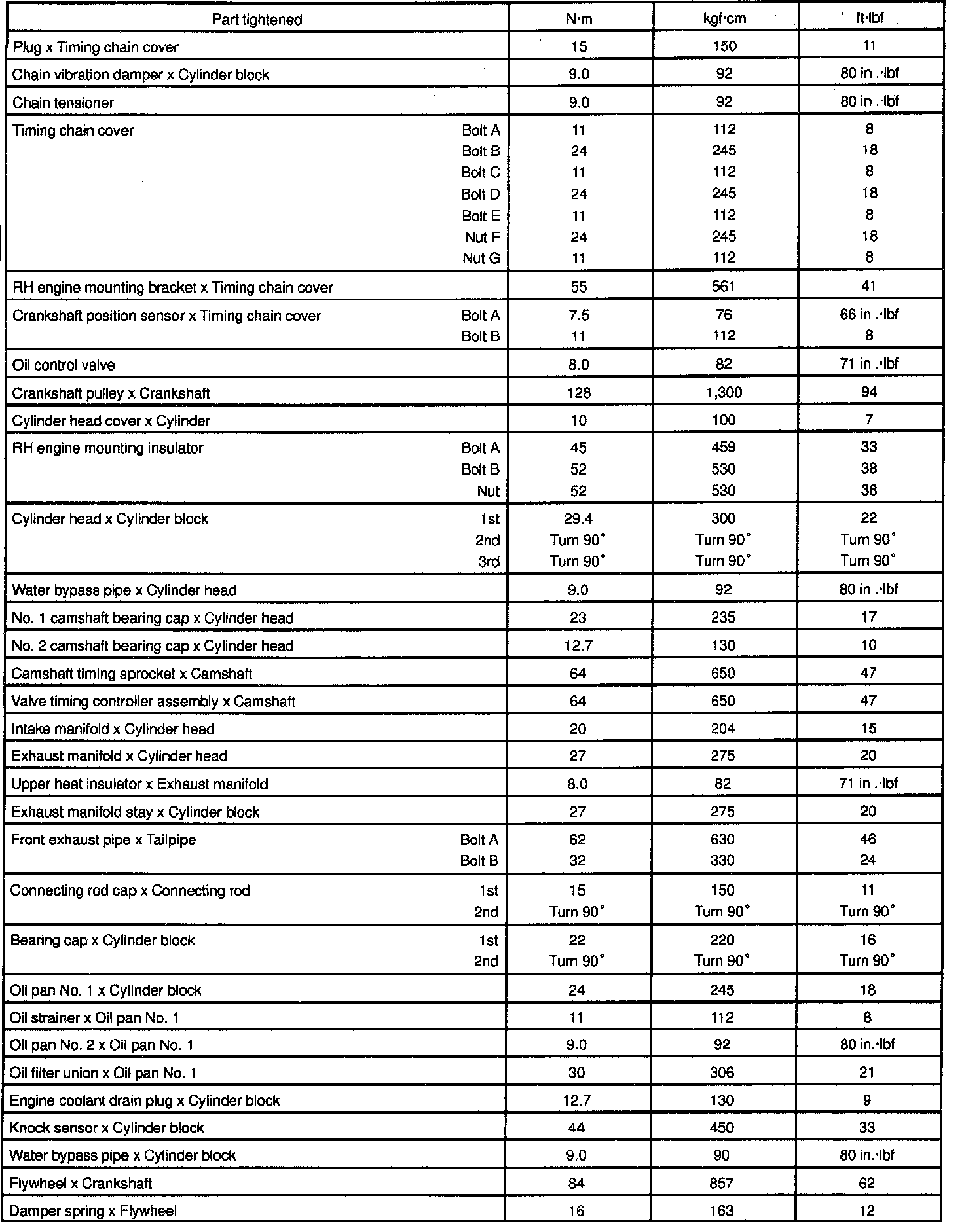 TORQUE SPECIFICATION: