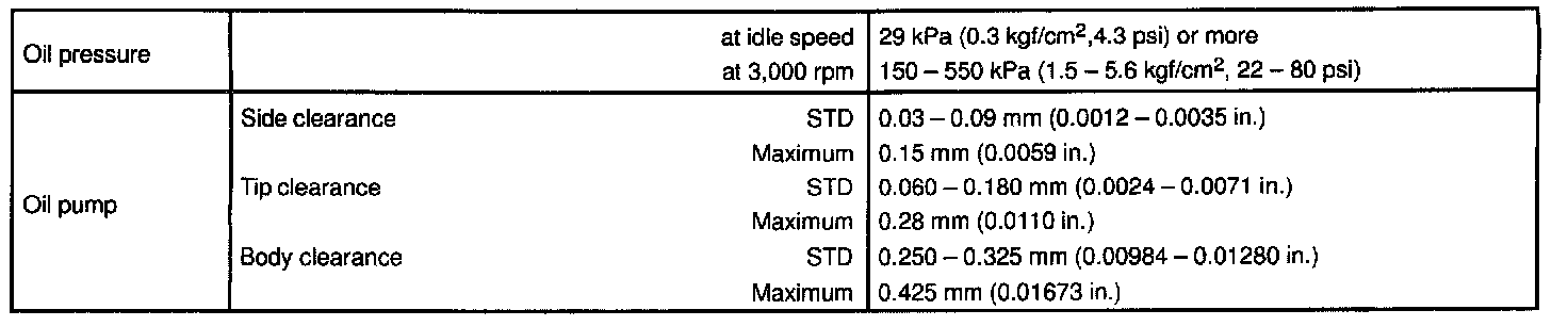TORQUE SPECIFICATION: